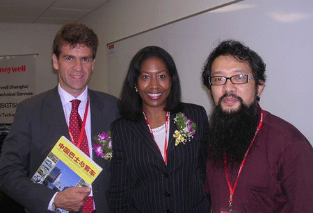 2005年6月8日,霍尼韦尔运输系统的总裁兼首席执行官艾德里安·布朗(中)、霍尼韦尔涡轮增压技术副总裁兼亚洲总经理马保乐(左)接受中国汽车城网站的专访。