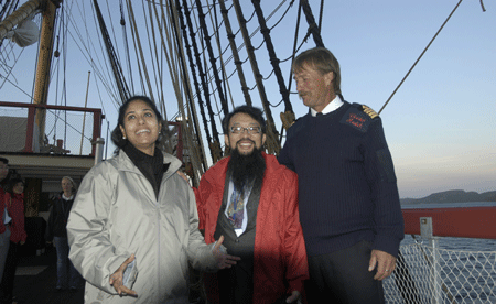 印度妹妹(左)和中国先生(中)与瑞典船长(右) 在东印度商船上