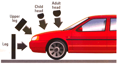 A series of tests are carried out to replicate accidents involving child and adult pedestrians where 汽车侧面碰撞的标准车速是50公里/小时(25mph). Impact sites are then assessed and rated fair, weak and poor. As with other tests, these are based on European Enhanced Vehicle Safety Committee guidelines