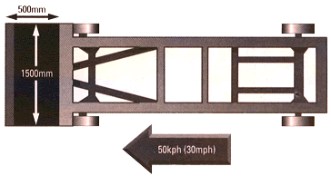| 汽车侧面碰撞的标准车速是50公里/小时 (30mph). Trolley fitted with a deformable front is